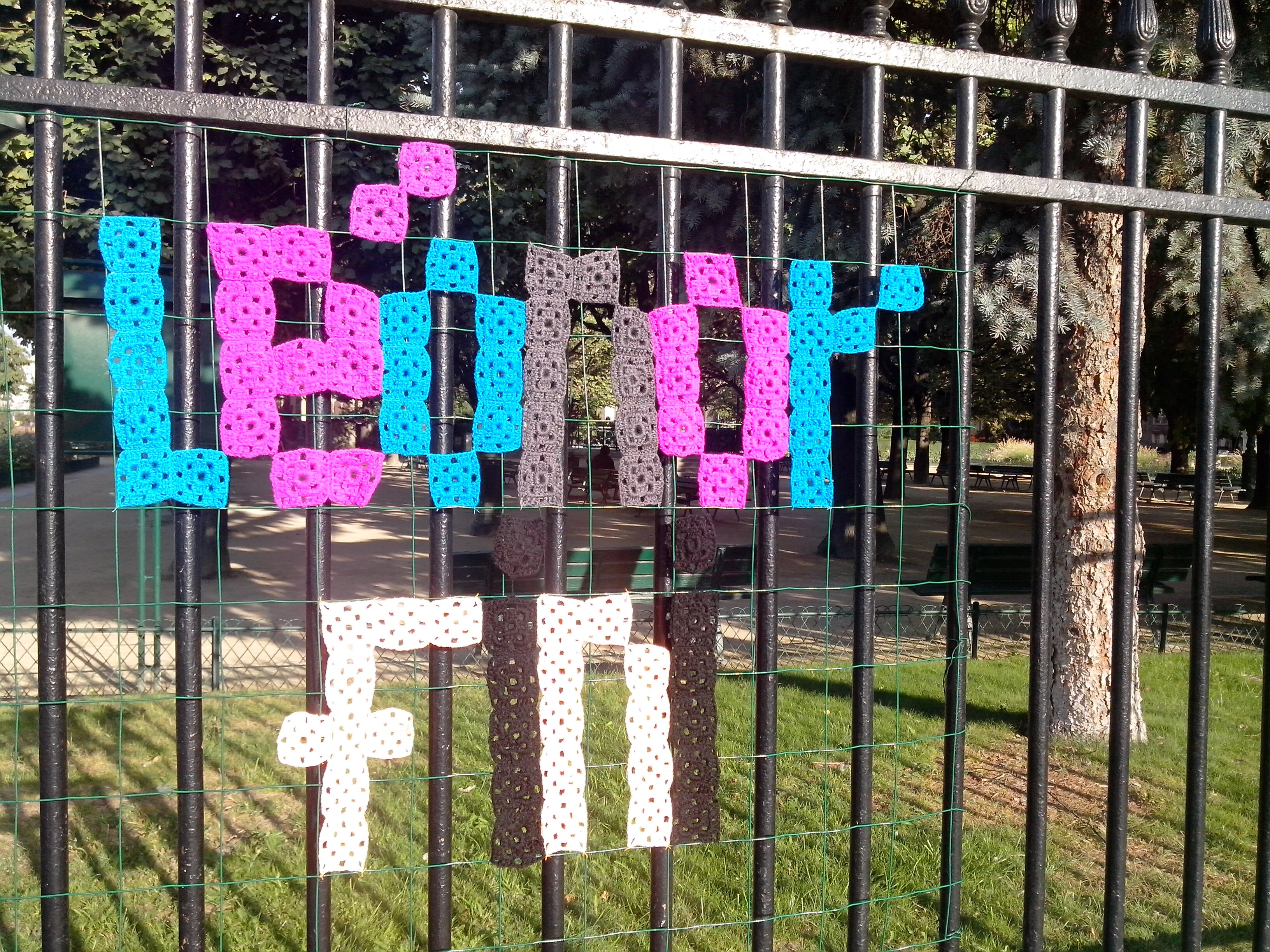 Le 26 août 2015, nous nous sommes réapproprié l’Île de la Cité en changeant tous les noms de rues par des noms de femmes remarquables. Pour compléter cette action, nous avons rendu hommage à ces femmes dans l’espace public en accrochant leurs noms, réalisés au crochet par une artiste de street art, BauBô, à plusieurs points stratégiques de l’Île de la Cité !